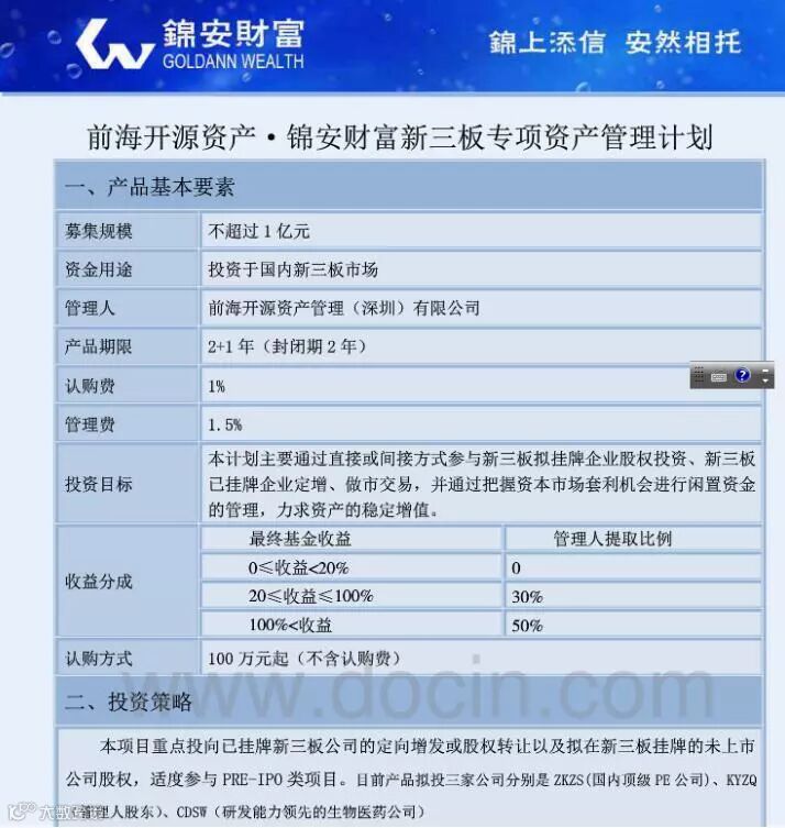 我们先来看看这个引发事件的《前海开源资产锦安财富新三板资产管理计划》: