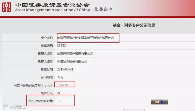 据前海开源和锦安基金声明,该资管计划通过直接或间接方式投资新三板已挂牌及拟挂牌企业的定增和股权,主要投向中科招商定增项目。