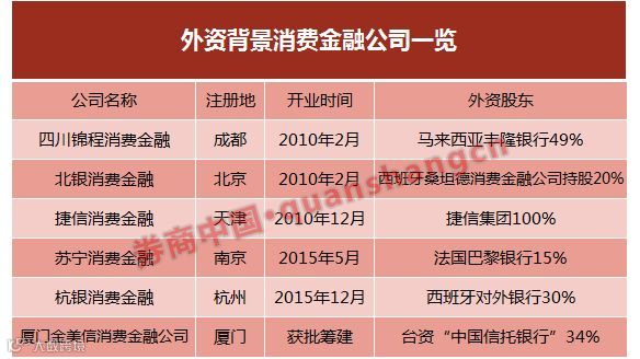 此次,厦门金美信消费金融公司正是消费金融领域引入外资的表现之一。据券商中国记者梳理,目前22家开业的持牌消费金融公司中,有外资背景的消费金融已经有5家,其中还包括一家外资独资的消费金融即捷信消费金融公司。