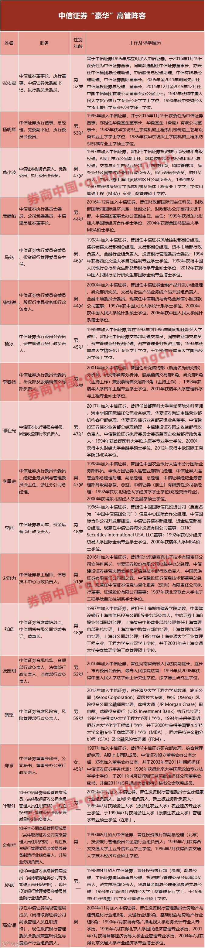 券商中国记者获悉,中信证券已基本完成了“史上‘最豪华’券商高管战队”的组建工作。