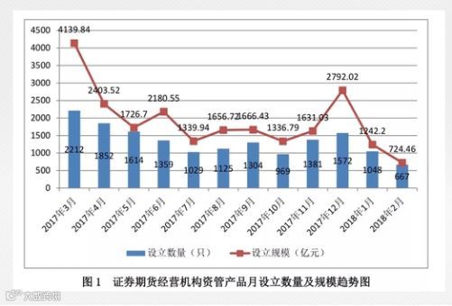 协会数据还显示,2018年2月1日-2月28日,证券期货经营机构共备案667只产品,设立规模724.46亿元,较2018年1月减少517.74亿元,下降41.68%。