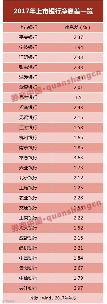 有据可查的A股26家上市银行,只有一家常熟银行净息差在3%以上,20余家银行集中在1.5%-2.5% 区间。