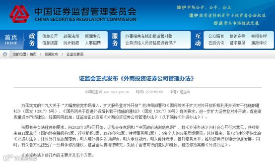 更为重要的是,自即日(4月28日)起,符合条件的境外投资者可根据《办法》和服务指南的要求,可向证监会提交变更公司实际控制人或者设立合资证券公司的申请材料。符合条件的内资主体可依法受让证券公司股权,亦可参股合资证券公司设立。
