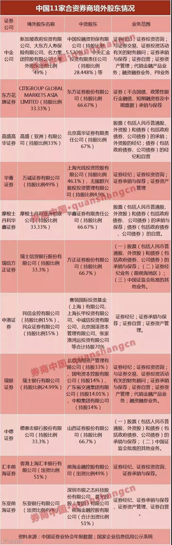 除此之外,还有4家已由合资券商转变为纯内地券商的公司。