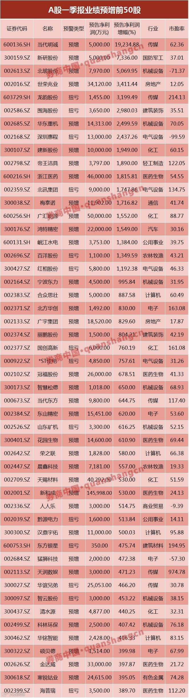 7、一季报预告密集发布,63股预增300%,38股预增超500%,18股预增超1000%,当代明诚预增192.3倍。