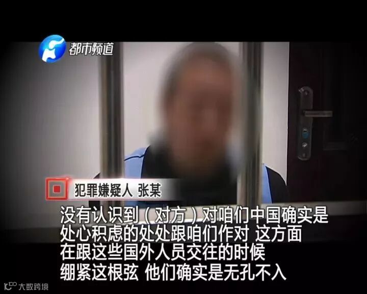 2017年经过审判,今年50岁的张某因犯间谍罪获刑15年。