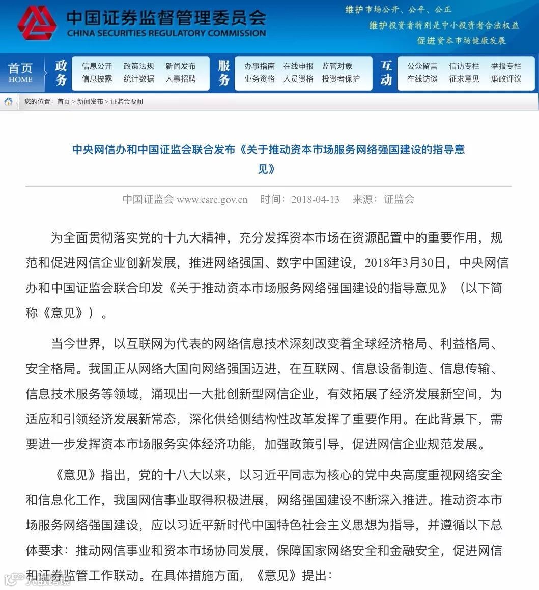 《意见》指出,要挥资本市场支持保障作用,更好服务国家战略,加快发展数字经济,大力培育网信企业,为资本市场注入新动力。加强监管,完善网络安全风险防控体系,引导网信企业在利用资本市场发展过程中加强网络安全管理,规范和强化网信企业信息披露,加强互联网上资本市场违法信息监测和处置,推动网信企业规范发展。加强网信和证券监管工作的协调联动,充分发挥资本市场资源配置作用。