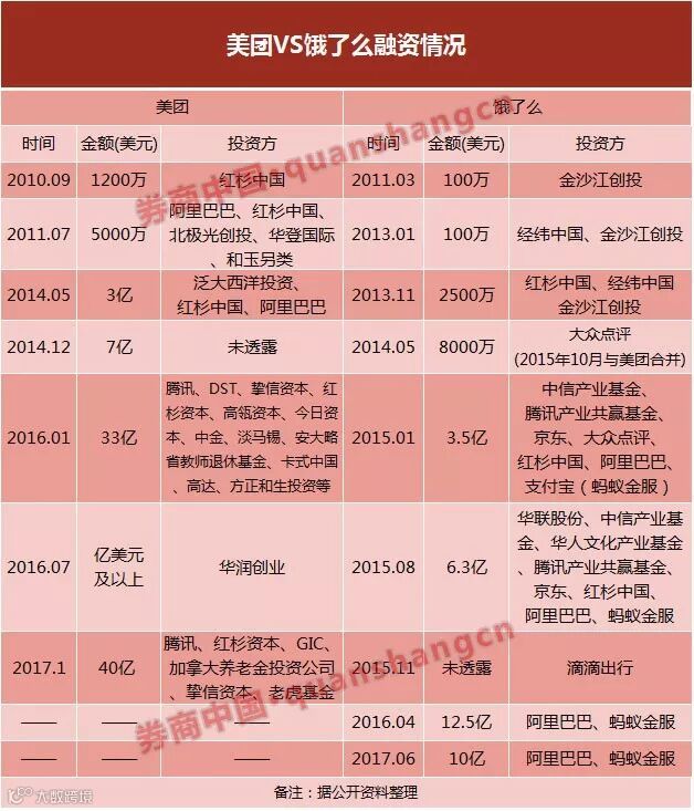 在此前数十年的发展中,饿了么拿过腾讯、京东的钱,也拿过阿里的钱。但从融资情况来看,2015年,阿里和美团逐渐走上陌路后,开始了对饿了么的加速布局。