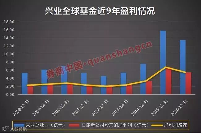 创立兴全基金后,杨东依旧保持优秀的业绩。从兴全基金过去九年的盈利情况来看,除去2011、2012和2016年收入和利润有小幅下滑以外,其他年份兴全基金的净利润和营收均实现稳定上涨,尤其是2015年大幅上升,未受股灾影响。自2008年以来,兴全基金的净利润从未低于2亿元。