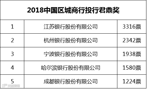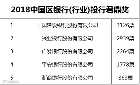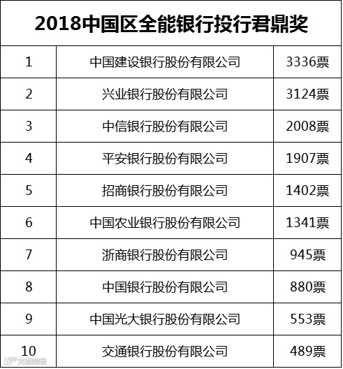银行方面,“2018中国全能银行投行君鼎奖”奖项,中农工建无一例外,得票数排名均出现在前十队列里: