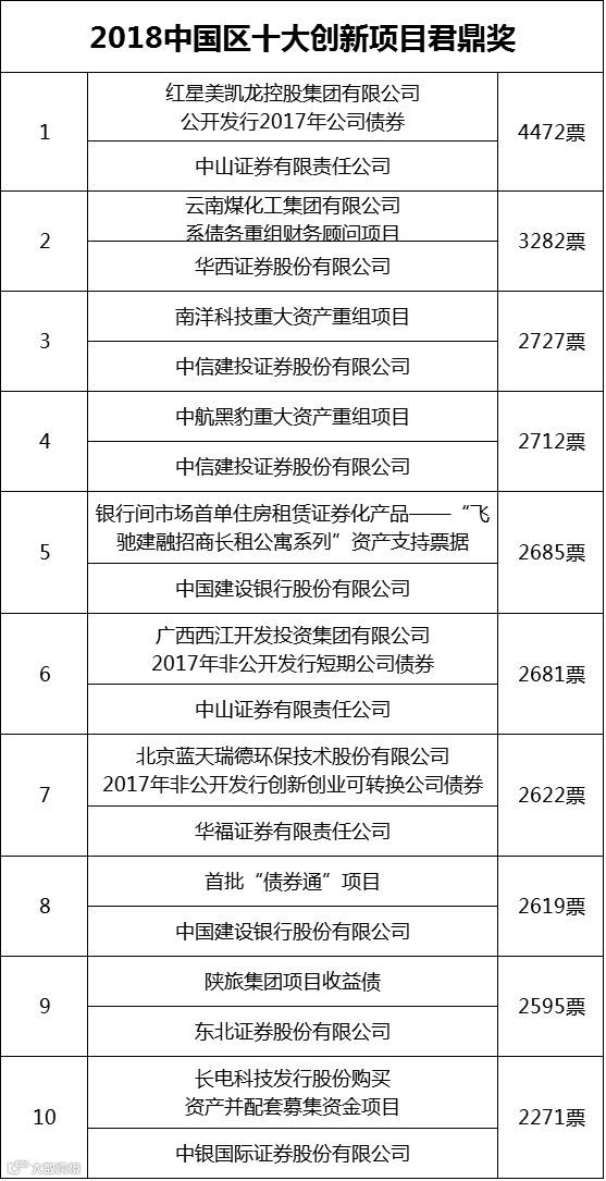 2018年大型券商的投行业务全面出击,而一些中小券商则将力量集中在优势业务上,比如绿色债、扶贫债等。因此,本次君鼎奖的微信投票中,“债券/ABS”类的奖项角逐也很是激烈。