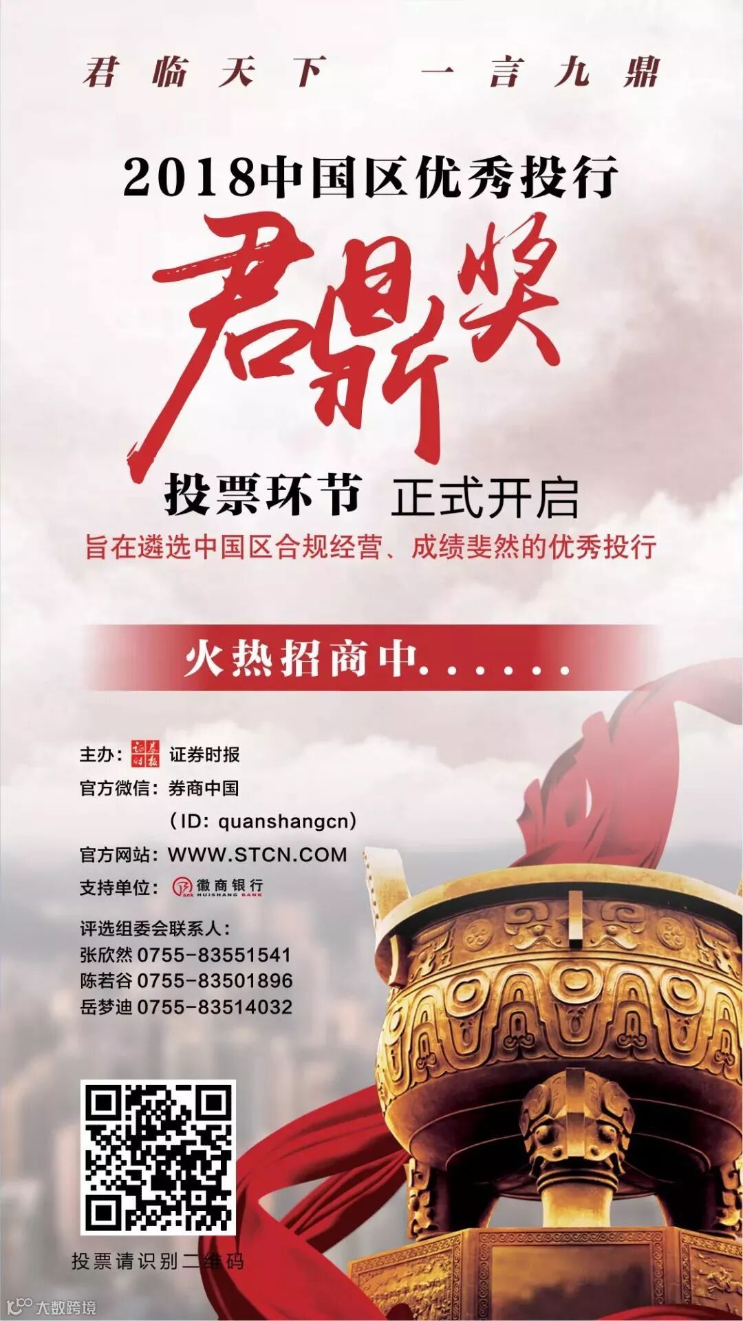 由证券时报主办的“2018中国区优秀投行君鼎奖”的微信投票活动,已进入最后两天倒计时,参评机构在微信投票中已经拉开了明显的差距。