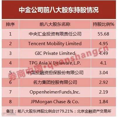 这也就是说,中央汇金打算以54亿元卖掉所持有的中金公司9.5%股权。此次股份转让完成后,中央汇金持有中金公司股权比例由55.68%减少至46.18%,中央汇金依然维持中金公司第一大股东之位。