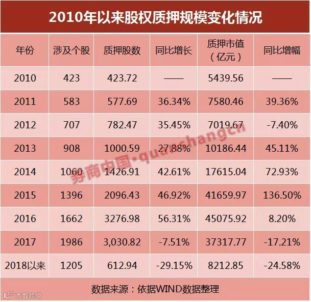 股权质押业务涉及市值首次突破万亿元级别,当年质押市值同比增长45%;