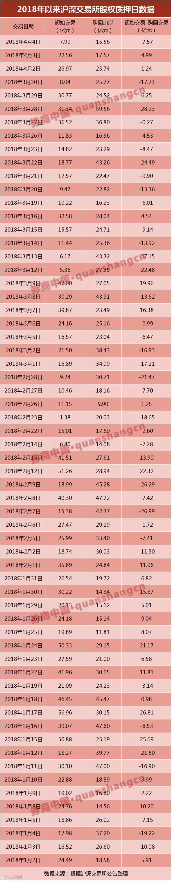 仅就4月已披露数据,4月2日、3日和4日中,质押初始交易金额分别为26.97亿元、22.56亿元和7.99亿元,购回交易分别为25.74亿元、17.57亿元和15.56亿元,二者差额分别为1.24亿元、4.99亿元和-7.57亿元。
