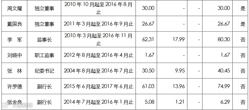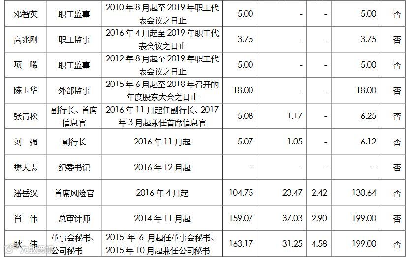 值得一提的是,潘岳汉在2016年4月起担任中国银行首席风险官之前为中国银行上海市分行行长兼任中国银行上海人民币交易业务总部副总裁。因此,2016年薪酬中也包含他在前三个月在业务一线担任职务的薪酬。