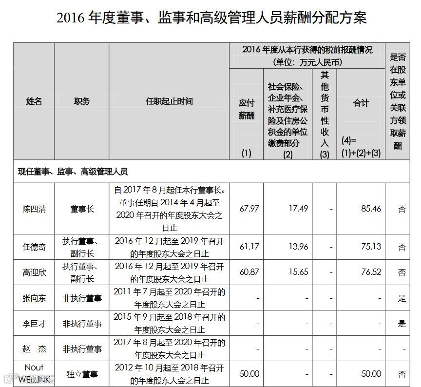 随着2017年年报即将迎来渐次披露,前述银行高管年薪变动情况如何也将浮出水面。
