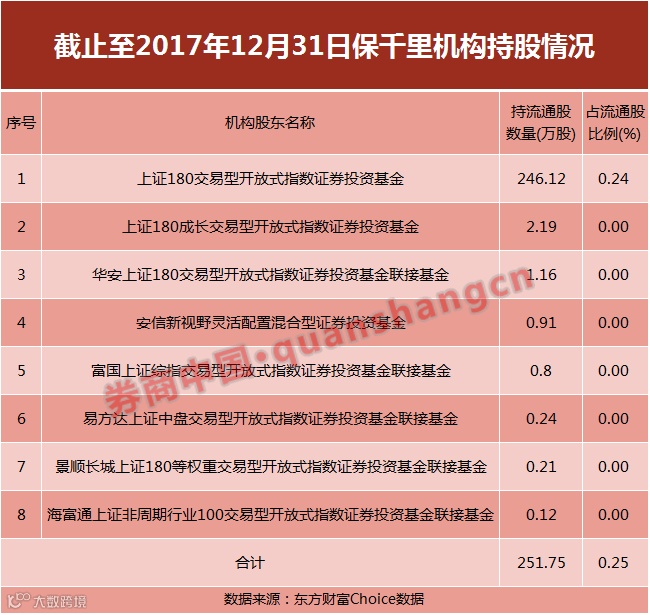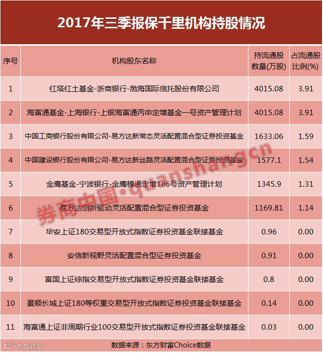 ST保千里2017年三季报机构持仓情况显示,除了上述提到的5家定增机构之外,还出现了多只基金产品。