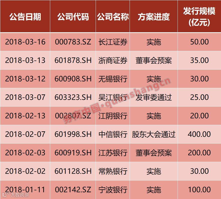 目前已完成发行的可转债包括长江证券、无锡银行等,还有包括将吴江银行在内的13家已获得发审委通过;包括中信银行在内的37家发行可转债已获股东大会通过;而公布可转债董事会预案的有20家,包括浙商证券、江苏银行等。