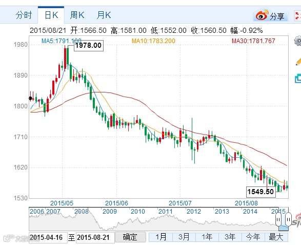 看到股市、大宗商品暴跌,黄金和白银笑了,因为他们是避险资产,所以止住跌势,走出一波反弹行情。估计中国大妈和中国央行都笑了: