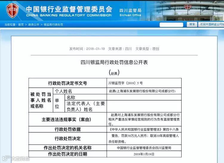 “这是一起浦发银行成都分行主导的有组织的造假案件,涉案金额巨大,手段隐蔽,性质恶劣,教训深刻。”银监会相关负责人称。先来看看主要处罚有哪些: