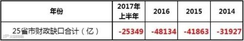 从2014年到2016年,25省合计的财政缺口数从31927亿,上升到48134亿,增幅51%。而今年上半年的财政缺口合计已经超过2.5万亿,2017年一定是要超过5万亿了。“地主”家有没有能力,补上这5万亿的财政缺口?