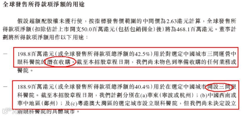 券商中国记者还注意到,希玛眼科对于此次募资的主要用途,其中,1.99亿港元,占募资净额中约42.5%,用于对选定中国城市三间运营中眼科医院的潜在收购;1.89亿元,占募资净额中约40.4%,用于在选定中国城市开设三件间眼科医院。