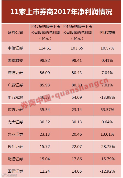 随着龙头券商年报业绩快报的陆续发布,2017年的业绩梯队也逐渐明晰。