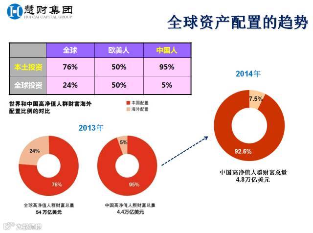 展望下半年,全球经济仍然疲软,上半年表现相对抢眼的欧元区和日本让位于美国。美联储加息预期吸引资金回流美国,美元长期走强。国内宽松低息、股市风险剧增,人民币贬值压力与日俱增,套利空间大幅缩窄。中国领袖级企业家更早地洞察这一趋势,如:李嘉诚、郭广昌、王健林、马云、潘石屹等,早已开始布局海外投资,大笔买入英国和美国资产。如今国内普通家庭亦开始海外投资步伐,然而最大的问题是,面对波动性和不确定性增大的投资市场,我们应如何做好全球资产配置,尤其是美元资产的配置,实现财富的保值和稳健的增值呢?为此,慧财集团将举办“当前经济形势下财富管理之全球资产配置”策略分享会,为您拨云开雾。