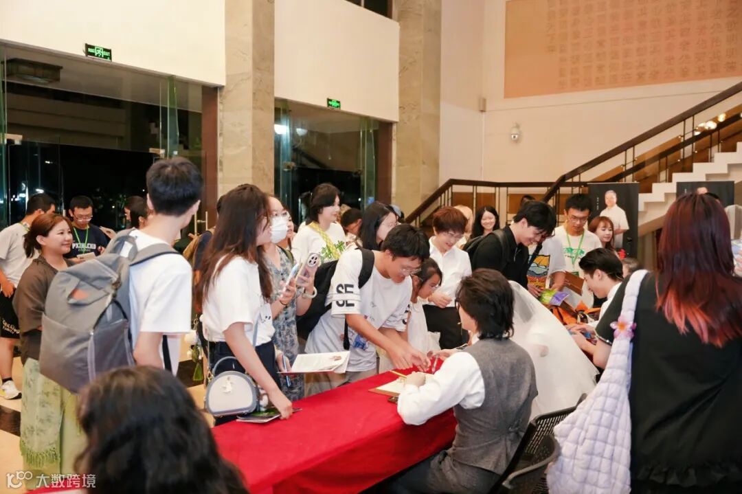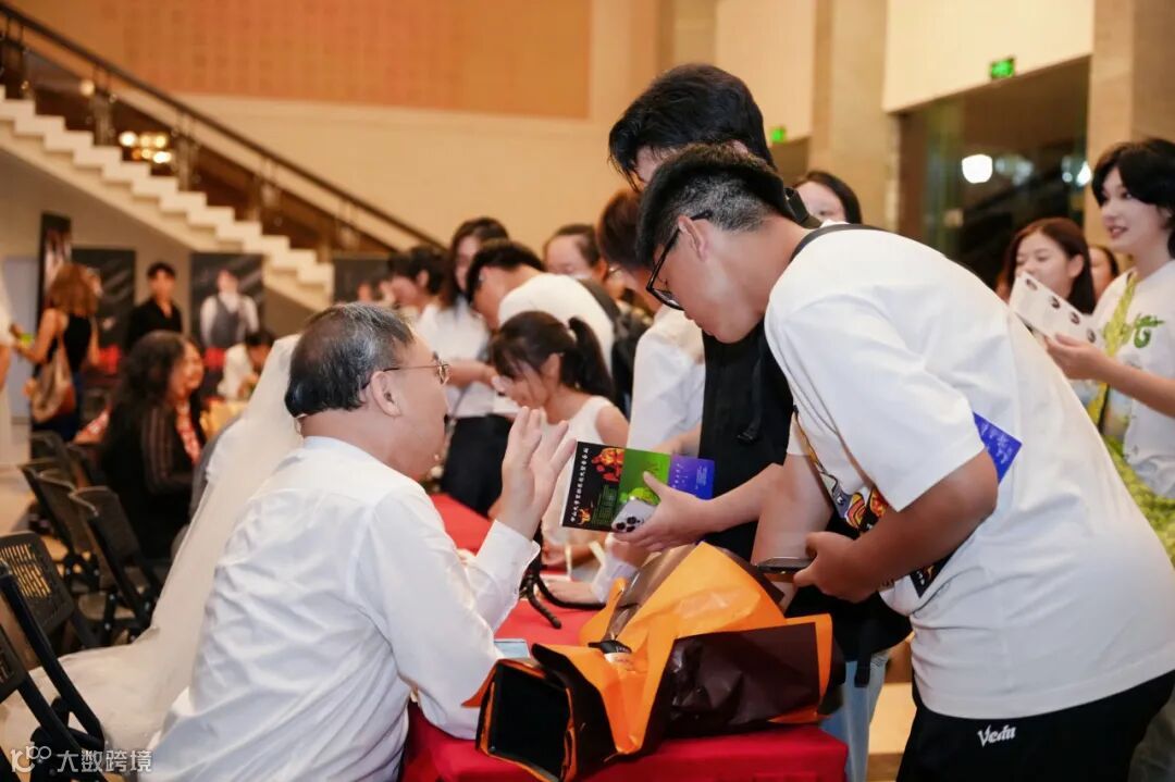 音乐剧《华夏书章》落幕,终场旋律渐息,“寻路” 至 “寻梦” 的舞台故事画上句点,但代际精神传承仍在延续。现场互动热烈,观众热情满溢。演员与观众近距离交流签名,每一个瞬间都藏着对这部剧的喜爱。