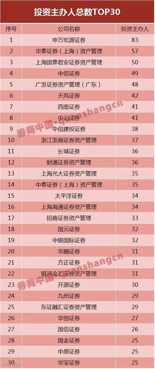 券商的投资主办人,券商资管的基金经理。在投资主办人方面,虽然都是十位数人员配置,但申万宏源居首,83名员工数,较第二名华泰证券资管公司多26人。国泰君安资管、中信证券、广发证券资管在方面人员储备也较多。