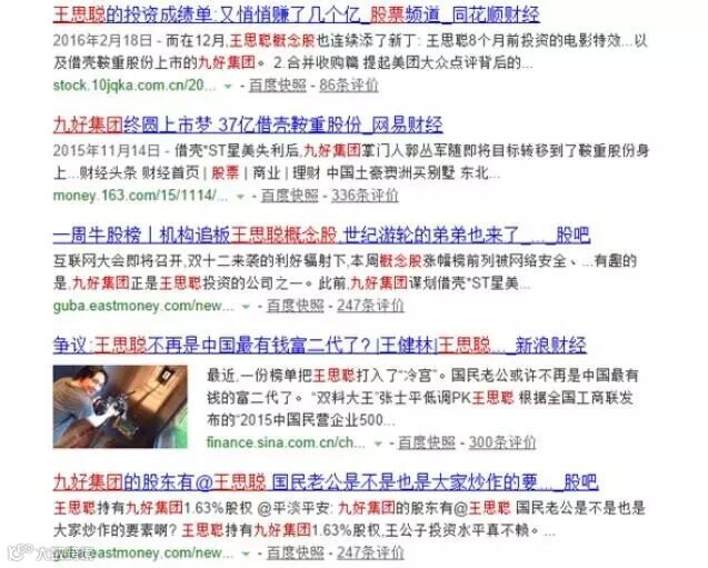 百度“九好集团”,我们会发现,后面跟着一个响亮的名字,那就是国民老公王思聪。