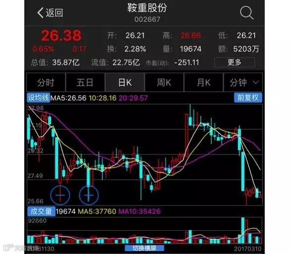 事实上,我们在上周就已在鞍重股份的股价变动上发现一些端倪——两条巨量大阴线!