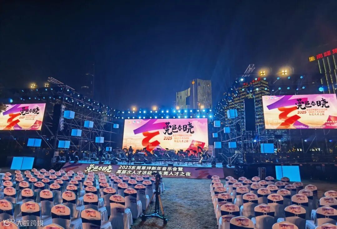 在东莞市中心广场东草坪上演的“莞邑春晓”2025东莞草坪新年音乐会暨高层次人才活动周“东莞人才之夜”上,友丰团队提供了包括舞美、灯光、音响制作及技术支持和设备租赁等一系列专业服务。