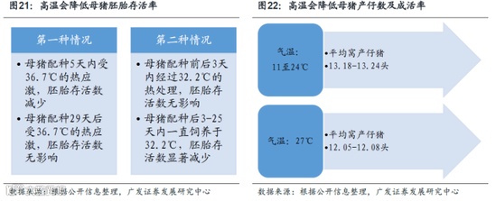 在环境温度对繁殖环节的影响上,高温将通过以下方面影响母猪的繁殖:初情期和断奶后返情期;受胎率;胚胎存活率;产仔数及成活率。此外,高温炎热的环境下,公猪的交配欲减退,精液品质也会下降。因此,在厄尔尼诺影响下,干旱和高温天气将影响生猪的供应数量。
