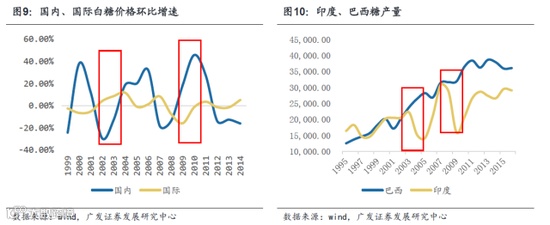 厄尔尼诺会造成太平洋及印度洋上的季风失衡,季风失衡导致印度及泰国的降雨量大幅降低,最终引发干旱,而甘蔗的生长发育需要较充沛的雨量,一般要求年降雨量1200毫米以上,在缺水条件下,甘蔗生长会受到抑制,产量迅速萎缩。2009年,厄尔尼诺引发印度洋上季风失衡,印度发生了五十年以来最严重的干旱,甘蔗产量降到了历史最低,这直接助推当年全球蔗糖价格达到了30年以来的顶峰。