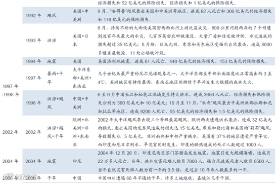 我们统计了历史上在厄尔尼诺现象发生的年份全球的规模较大的自然灾害事件,发现:自然灾害发生的地区多为环太平洋的南北美洲地区、东南亚地区、非洲地区以及印度次大陆地区。很显然,这些地区发生的自然灾害与厄尔尼诺现象存在一定的内在联系;自然灾害多为飓风、台风、暴雪、干旱、洪水、低温等与气候环境有关的灾害。在这些年份,厄尔尼诺现象引发或者加剧了相应自然灾害的程度。其中,1982年-1983年的厄尔尼诺是一次破纪录的强事件,1997年-1998年的厄尔尼诺是规模显着的一次事件,两次厄尔尼诺都产生了极大的影响,一方面影响区域广,另一方面引发的灾害损失惨重。