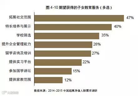 根据胡润研究院资料显示,近九成超高净值人士有子女,这其中65% 的子女处于受教育阶段,另外35%已处于成人阶段。