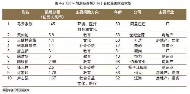 捐款总额超过1,000 万的比例达到45%,超过5,000 万的比例也超过1/4,平均捐款金额达到2,800 万,占他们平均资产的1.6%。