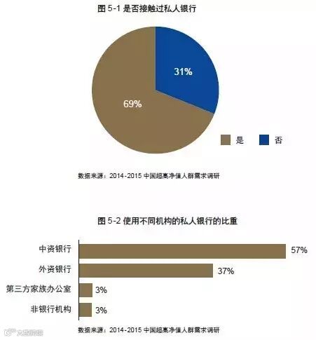 本次研究发现,有近70%的超高净值人士接触过私人银行服务,主办行选择中资私人银行与外资私人银行的占比分别为57%和37%。