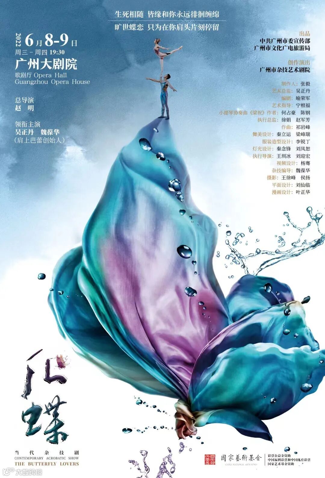 当代杂技剧《化·蝶》是广州市杂技艺术剧院继《西游记》(「文华奖』作品)、《笑傲江湖》后全新打造的又一大型杂技剧。该剧由京沪穗三地国内顶尖艺术家共同参与精心制作,以杂技、舞蹈及戏剧等多元艺术语言讲述中国故事,用现代手法重塑经典。全剧以梁山伯和祝英台凄美浪漫的经典爱情作为故事基线,以梁祝化蝶的意象作为爱情的象征,结合庄周化蝶的哲学思想,紧紧抓住「蝶』这种意像,把蝴蝶破茧化蝶的自然过程。跟梁祝生死爱恋的过程完美地结合起来,表现一个生命从孕育、孵化、抗争到破茧而出、自由飞翔的过程,多层次多角度来讲述化蝶的故事,阐述生命的意义。全剧写意、空灵而浪漫,既有传统中国文化的审美,又有当代舞台表演的创新。尤其全剧对于肩上芭蕾的运用,起到了画龙点睛的效果,从而烘托出「生死相随,皆缘和你永远徘徊缠绵』以及「旷世蝶恋,只为在你肩头片刻停留』的独特艺术效果。