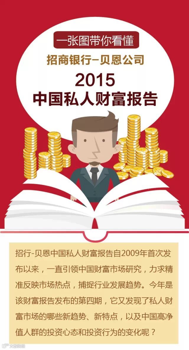 作为招商银行私人银行贵宾客户的专属读物,我们《财智生活》也将跟随高净值人群的投资心态和行为而转变方向,为高净值人群提供更好更全面的物质和精神财富传承、海外投资等方面的精彩内容。这一次,让我们先睹为快,一张图就让你读懂《2015中国私人财富报告》都说了什么。