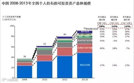 近年来,中国居民可投资资产快速上升,总规模达100万亿。然而,到目前为止,国人50%以上的投资资产是以存款和现金的形式存在,财富管理增值空间大。