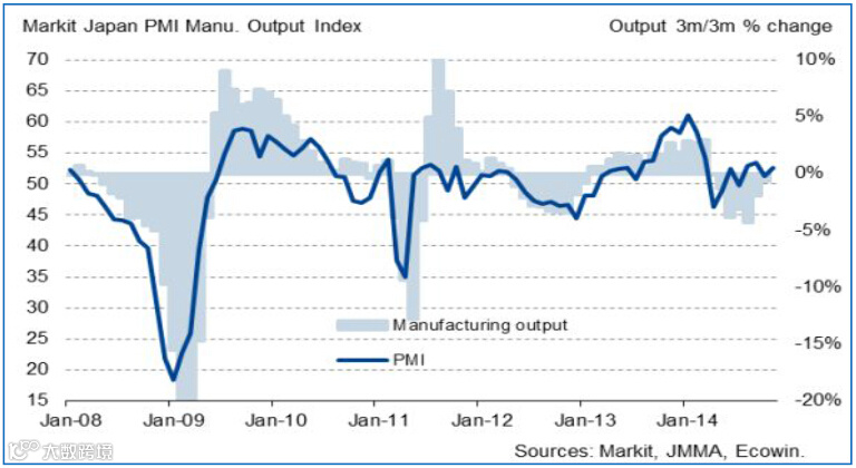 12月25日,日本将公布11月工业产出数据初值,这对于预测四季度GDP数据至关重要。这一数据可以用来判断,日本经济是否摆脱年初消费税上调的负面影响。日本制造业PMI显示12月制造业可能有所加速,日本经济或许能够重回增长。