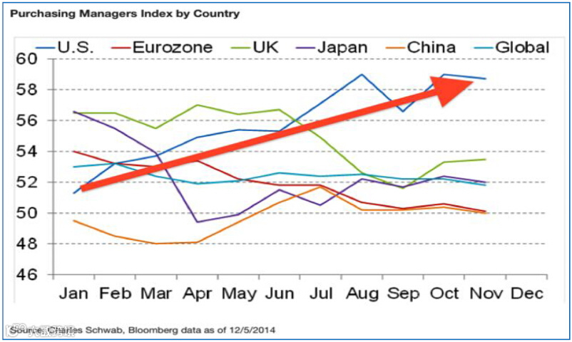 3、上周美国一些宏观数据表现不错,比如11月工业生产环比增长1.3%,增幅远超0.7%的预期幅度,而且创2010年5月以来最大单月增幅;11月产能利用率六年来首次突破80%;上周首次申请失业救济人数28.9万人,低于预期的29.5万人。