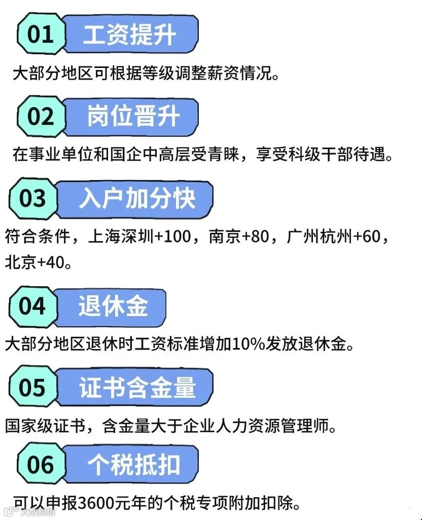 以广东省为例,中级职称在广东省优势明显,尤其是在落户方面,拥有中级职称,取得证书满足以下条件即可直接落户广州、深圳、佛山、东莞等城市,直接走人才引进即可,不用拼积分,入户流程较简单。(其他一线城市具体积分详情,可咨询老师)
