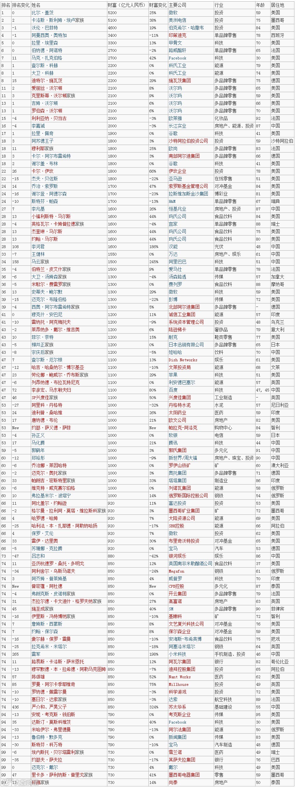 创新科技支持下的颠覆性价值创造在最近成就了更多的富豪。
