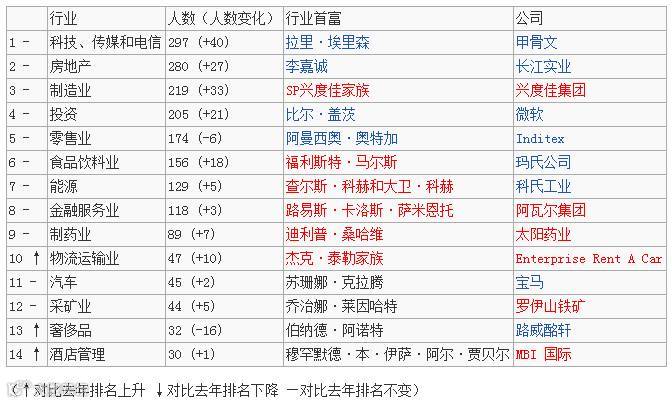 科技行业第二年成为上榜富豪财富的主要来源,297人,比去年增加40人。其次是房地产、制造业、投资和零售业。而房地产是上榜中国富豪最主要的财富来源,其次是制造业和科技行业。30岁的扎克伯格财富增长42%,闯进了榜单前十位。