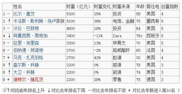 全球十大富豪