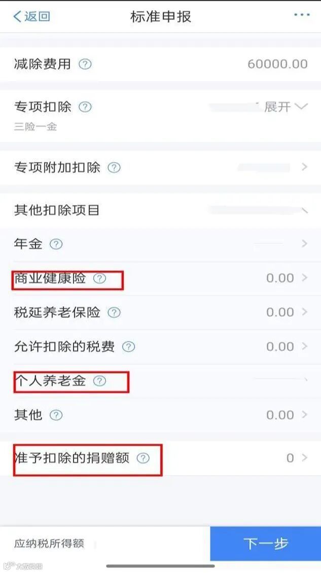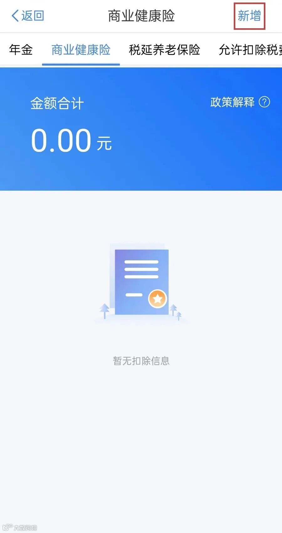 如您有符合条件的其他扣除(如商业健康险、个人养老金)、准予扣除的捐赠额,可点击相应明细数据列进入详情页面,点击右上角【新增】。